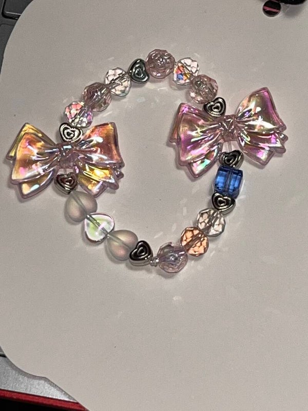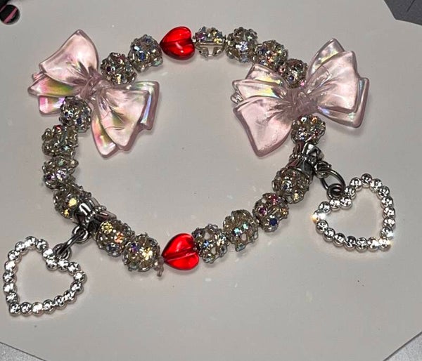 Beautiful Pink shimmery bows with lovely pink and & sparkling diamonds topped off with bling beads